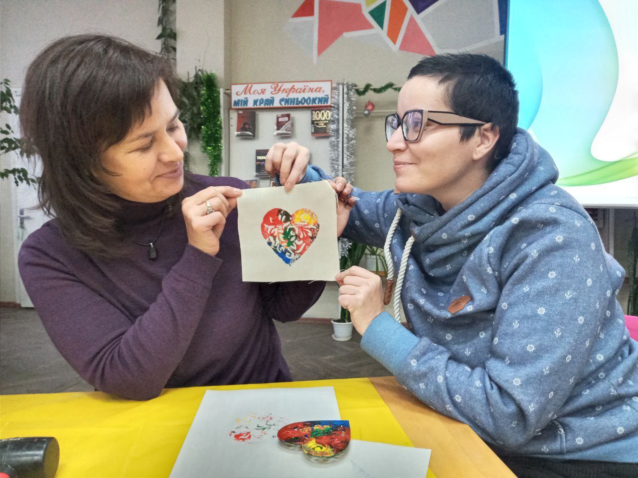 У заключній частині відбувся майстерклас – виготовлення ялинкових іграшок способом вибійки на полотні – відтворення образних та сюжетних композицій.