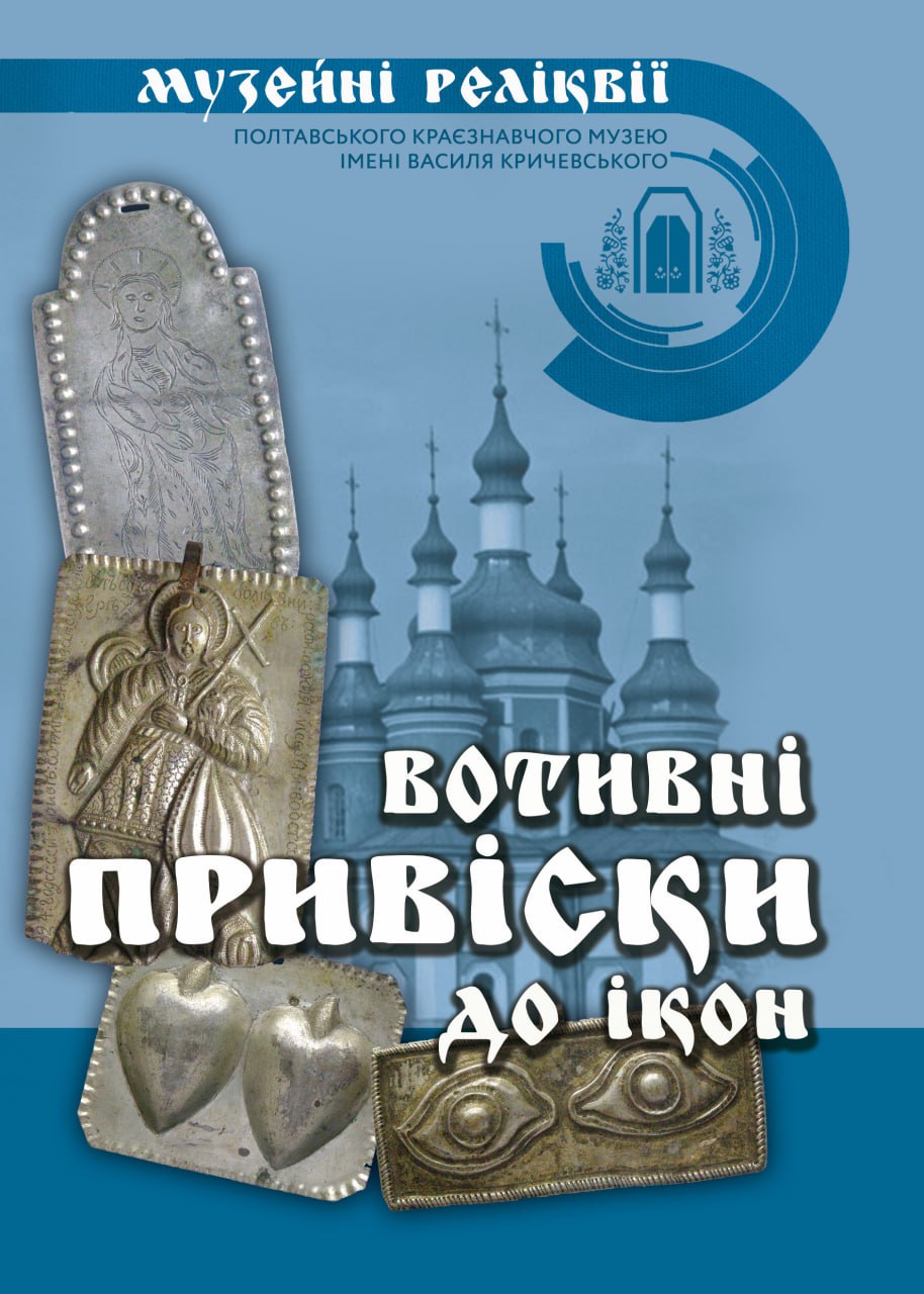 Видання "Вотивні привіски до ікон" присвячене колекції цих артефактів у зібранні Полтавського краєзнавчого музею імені Василя Кричевського. Переважно збірка була сформована колишнім завідувачем етнографічного відділу та заступником директора Я. О. Риженком (1892—1974).