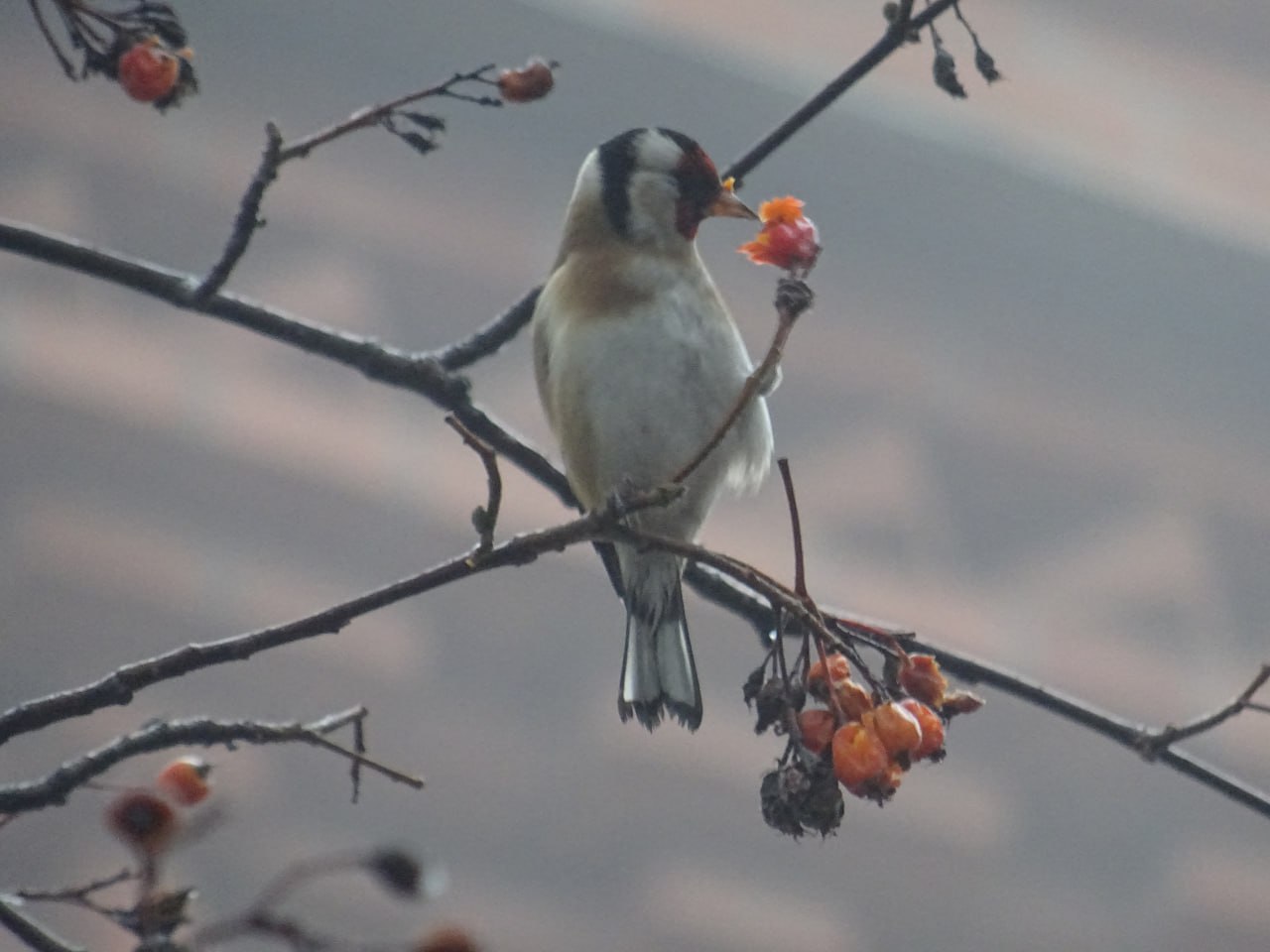 Погодні умови не дуже сприяли якісним фото, але яскравого щиглика добре видно навіть у тумані.![]()