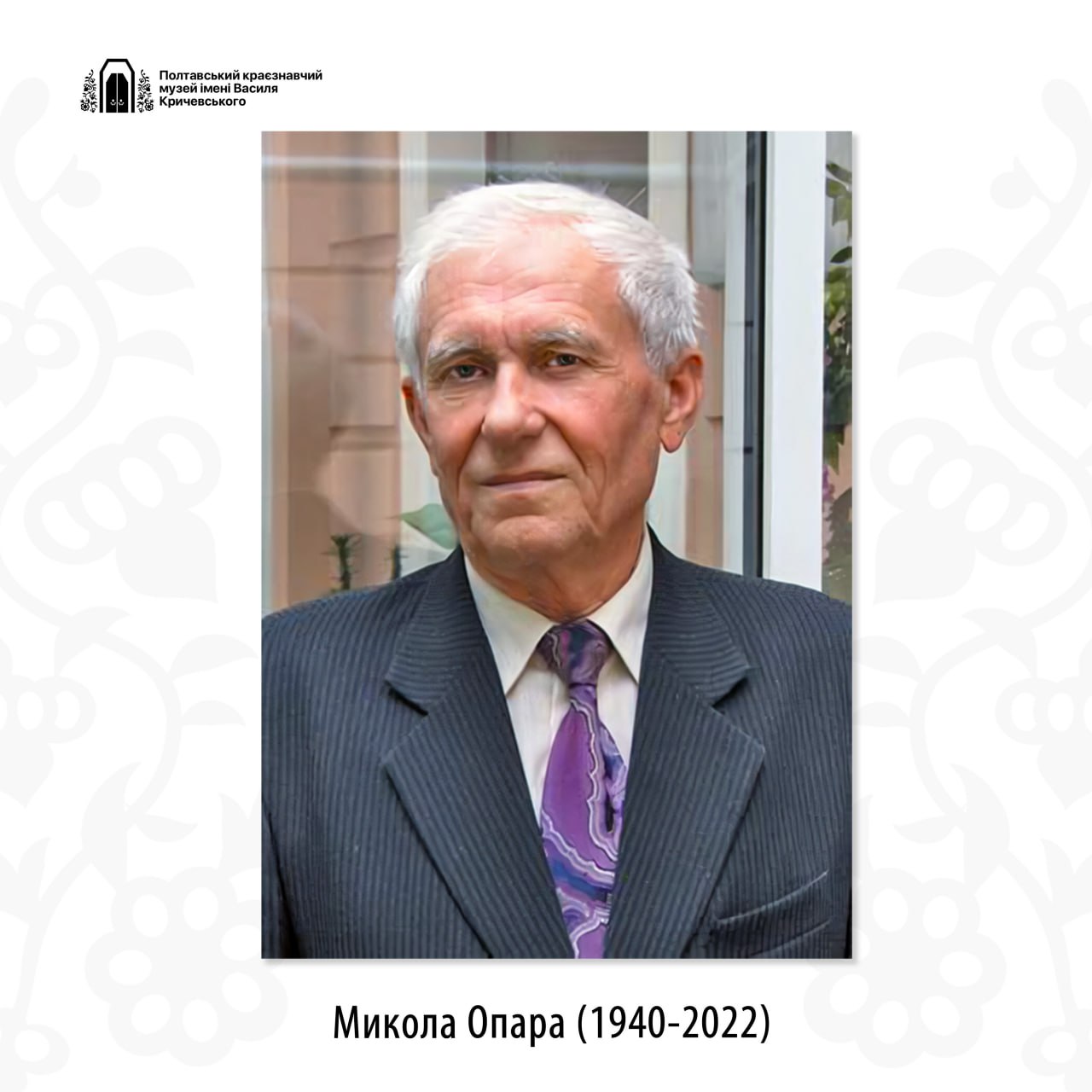 Науковець довго підтримував тісні творчі зв’язки із Полтавським краєзнавчим музеєм імені Василя Кричевського. Сьогодні ми з великою шаною, повагою і вдячністю згадуємо цю світлу, добру і мудру Людину, чиє життя та діяльність були присвячені збереженню рідної землі – найбільшого багатства України.