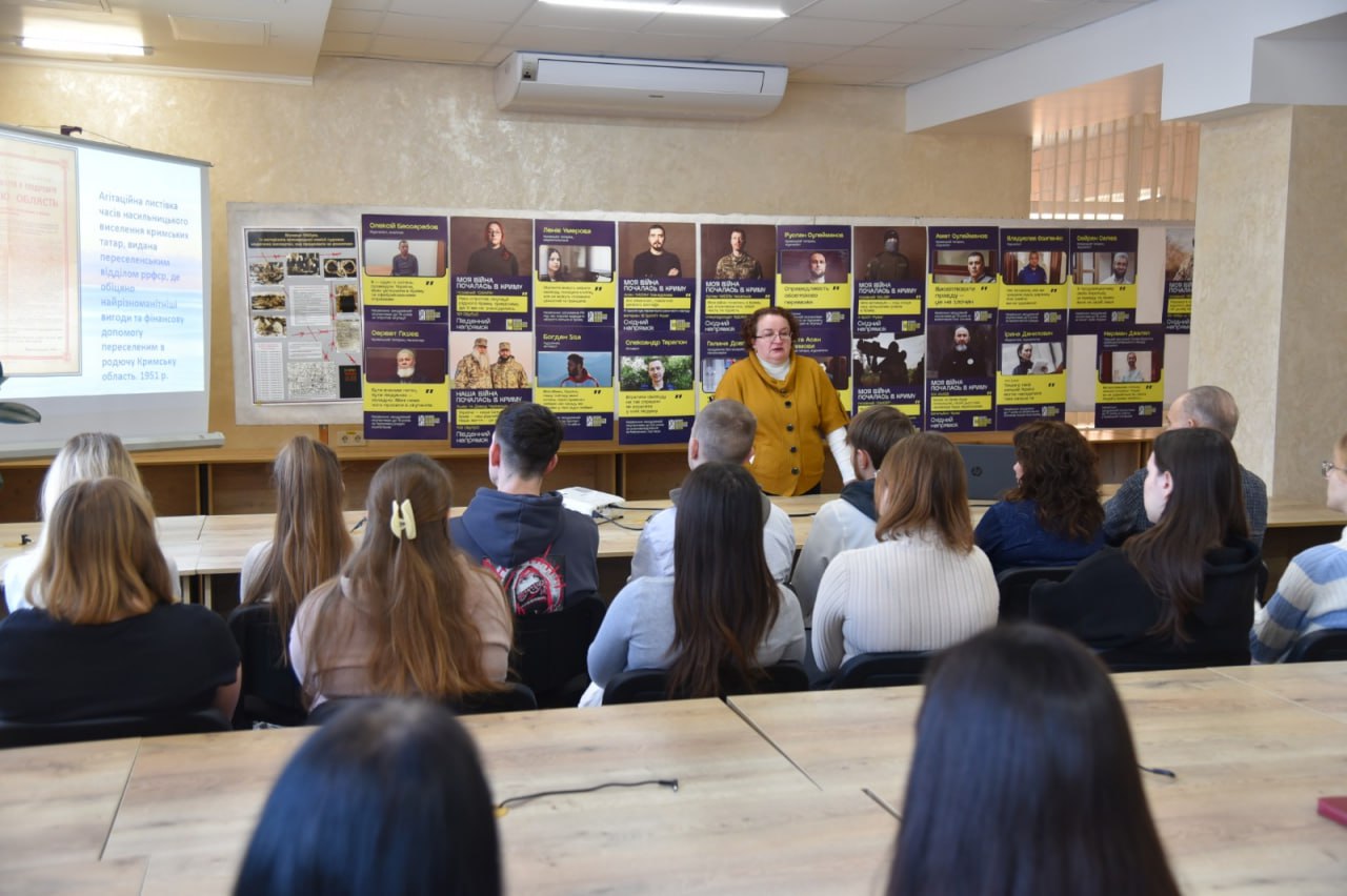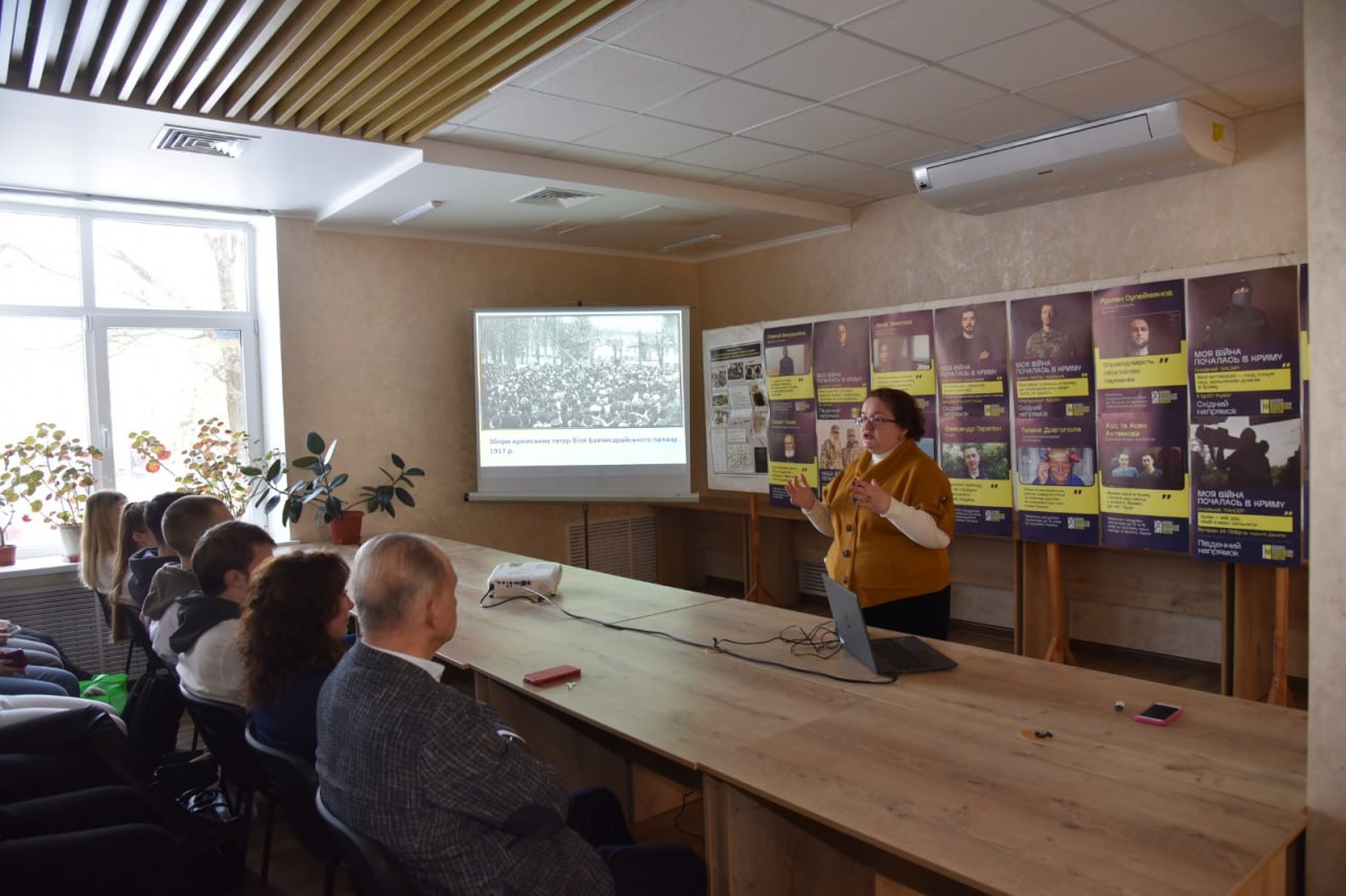 Розмову вела завідувачка науково-дослідного експозиційного відділу новітньої історії Полтавського краєзнавчого музею імені Василя Кричевського Наталія Кузьменко, що навела факти, показала світлини, познайомила з документами. У цьому їй допомогла виставка плакатів «10 років спротиву окупації Криму». Уважні слухачі, студенти та викладачі ПДМУ, робили висновки.