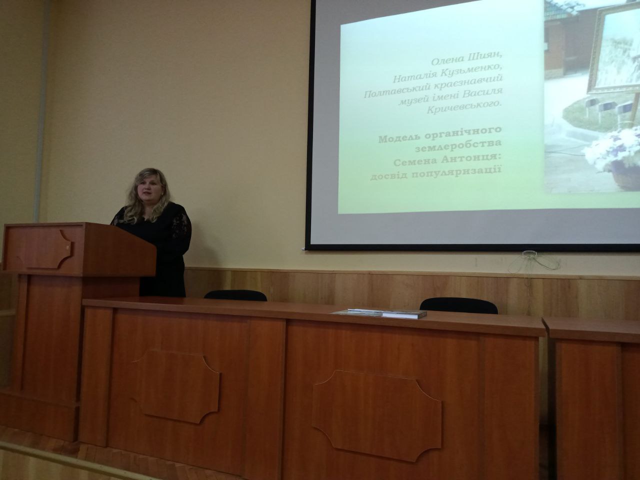 Повідомлення наших дослідниць було присвячене досвіду популяризації моделі органічного землеробства Семена Антонця музейними засобами, зокрема виставці "Совість землі", що стала однією з ключових музейних подій 2025 року.