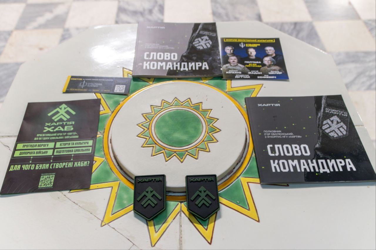 Під час спільної роботи над подією до Дня Гідності та Свободи, представники організації передали до фондів Полтавського краєзнавчого музею імені Василя Кричевського артефакти своєї поточної роботи — поліграфічну продукцію, зокрема створену в рамках організації фестивалю «Сталеве слово», та волонтерські шеврони з айдентикою корпусу «Хартія».