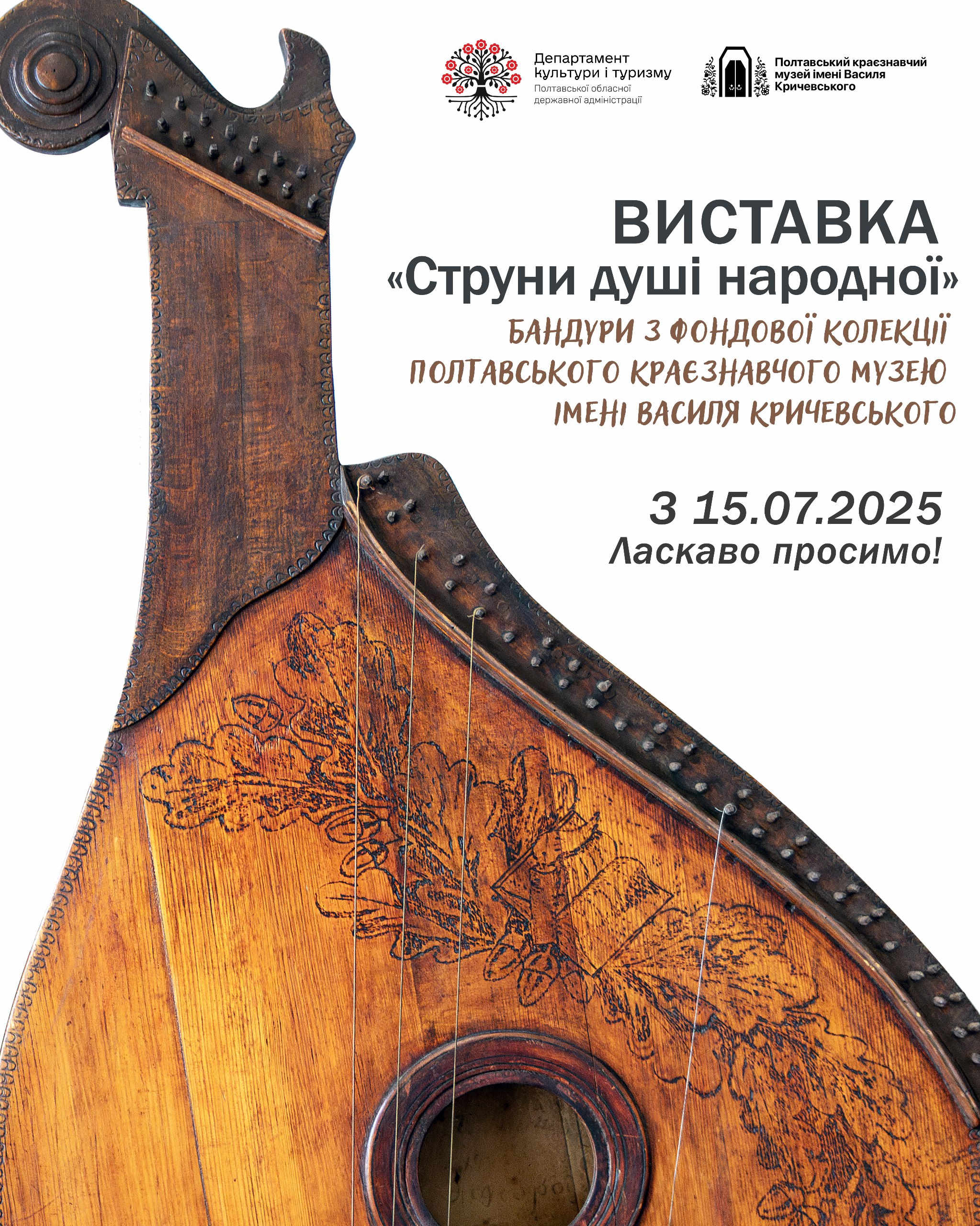 До артефактів, з якими уособлюється традиційна українська культура відноситься бандура – струнно-щипковий музичний інструмент. Фондова колекція цих інструментів у Полтавському краєзнавчому музеї імені Василя Кричевського нараховує 18 одиниць зберігання. На виставці – 11 історій про бандури та людей, пов’язаних з ними долею.