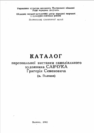 Обласна виставка творів самодіяльних художників та майстрів декоративно-прикладного мистецтва Полтавщини Обласна виставка творів самодіяльних художників та майстрів декоративно-прикладного мистецтва Полтавщини / Полтав. обл. буд. народ. творчості; ПКМ; [укл. Фурман В. С.]. – Полтава: Зіньків. рай. типогр., 1978. – 20 с. Перелік творів звітної виставки самодіяльних митців, що експонувалася в музеї у 1977 – на поч. 1978 рр. |
